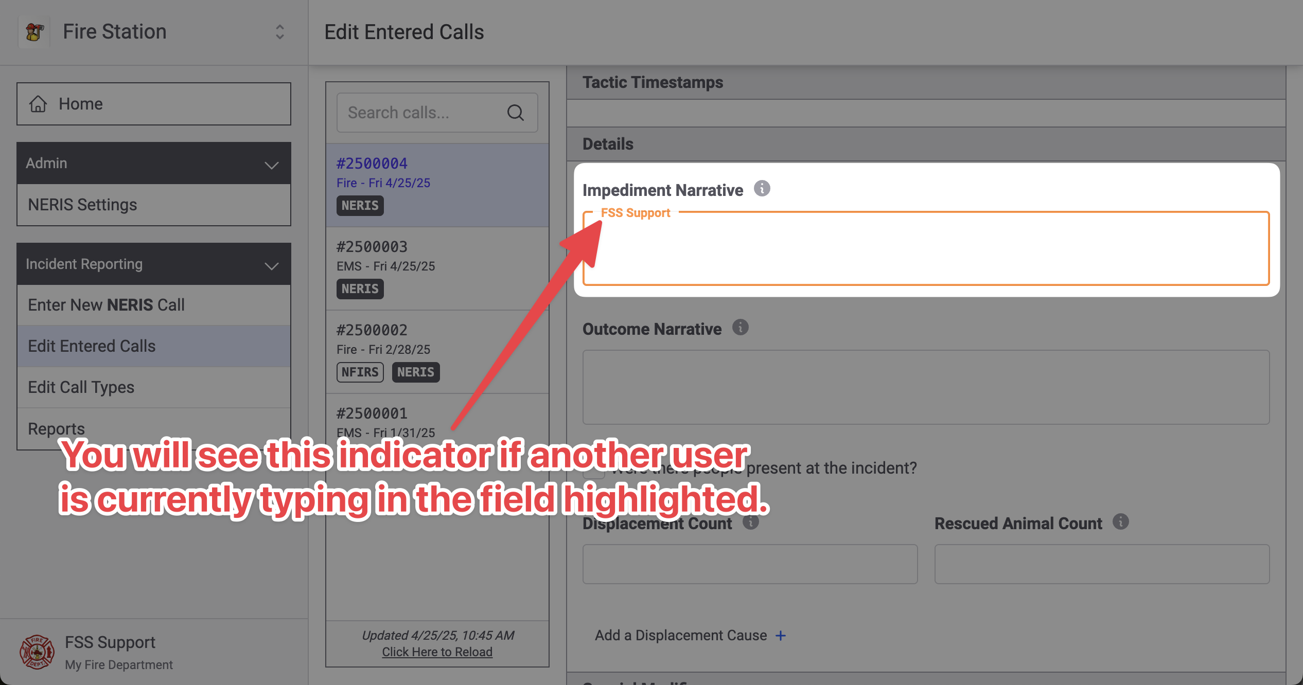 If multiple people are editing the same call, you will see an indicator as they make changes.
